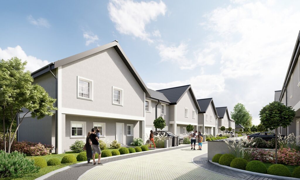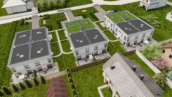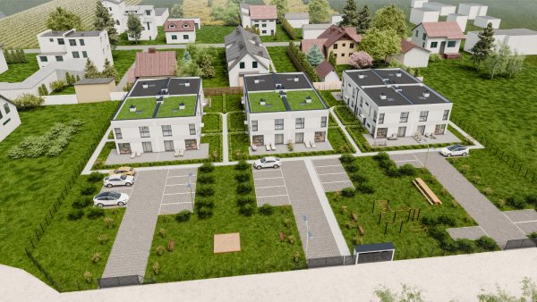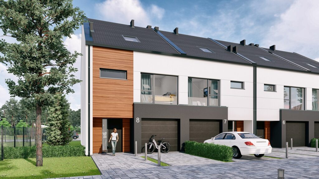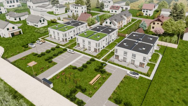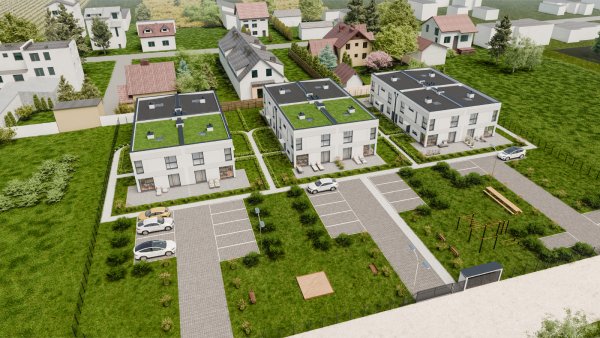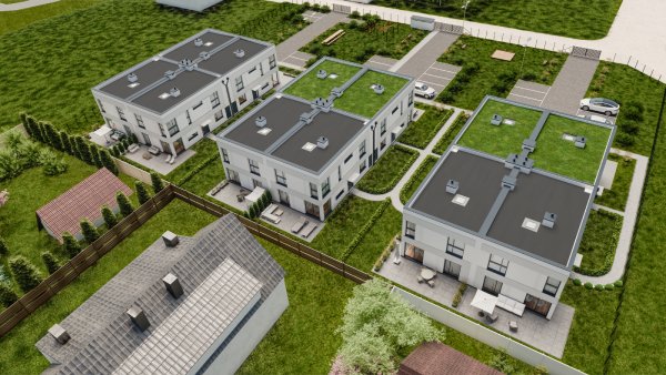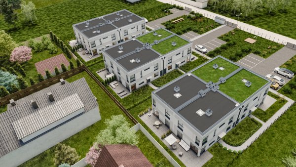 5 pokoi, 3 łazienki, ogródek 94 m² – 103 m², ekspozycja płn.-wsch., płn.-zach., 2 miejsca postojowe