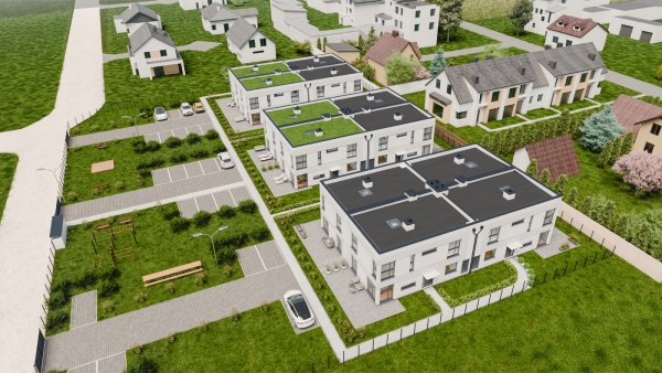 Nasze domy mają wszystkie niezbędne media: gaz, prąd, wodę miejską, kanalizację, światłowód. Dodatkowo wyposażone są w okablowanie do instalacji alarmowej, przyłącze do ładowania samochodu elektrycznego. Przygotowane pod fotowoltaikę. Można też zamontować kominek w salonie.